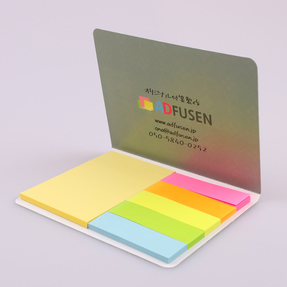 カバーの裏表はもちろんカバーの仲と付箋の表面まで活用できる効果的な商品です。